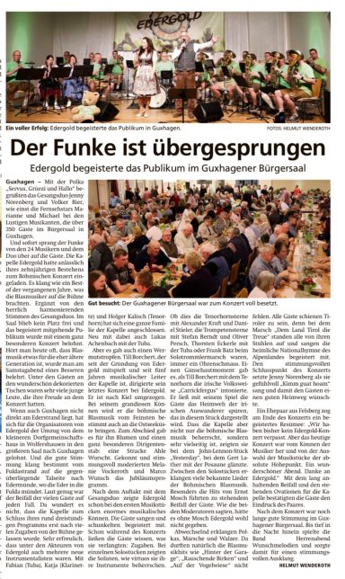 Edergold - Blasmusik vom Feinsten im ausverkauften Bürgersaal in Guxhagen mit dem Konzert "10 Jahre Edergold!"